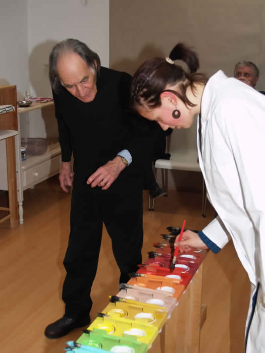 „Malen war noch nie meine Stärke!“ oder „… da habe ich Hemmungen. Malen können andere besser als ich.“ So denken nicht nur Erwachsene über sich, sondern schon Kinder, die unangenehme Erfahrungen gemacht haben und beschämt im selben Moment am liebsten ihr Bild versteckt hätten. In Karlsruhe wurde nun für Menschen aller Altersgruppen in der Mathystraße der Malort 28 mit Arno Stern eröffnet, um vom Alltäglichen abgesondert Formen zu finden und mit Farben zu spielen – zu malen, was aus dem Unbewussten, der inneren Notwendigkeit heraus, geschehen will – ohne Zielsetzung und Gewohnheiten, die überwunden werden wollen.